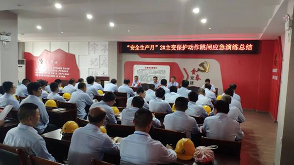 为了宣传贯彻《安全生产法》,同时学习徐振华总经理“学习新安法,做好第一责任人”的安全理念,增强公司员工的责任意识,加深安全观念,体现“安全第一,预防为主,综合治理”的安全方针。提高企业职工应对突发事件的应变处置能力,对照公司安全月活动方案。在2022年 6月28日上午,kaiyun举行了“2#主变保护动作跳闸大型反事故演习”活动。